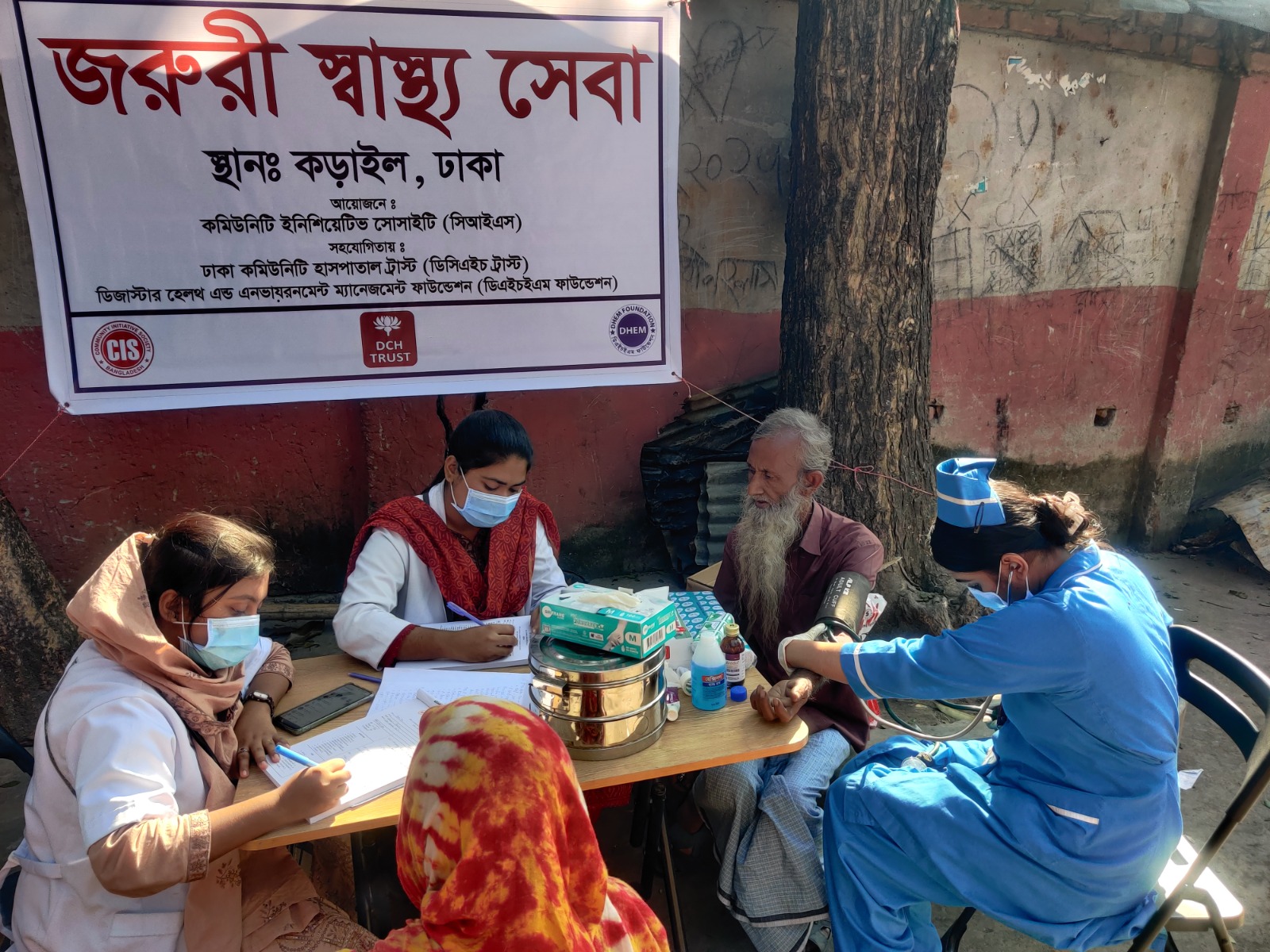 この緊急事態に対し、アジアパシフィックアライアンス(A-PAD)バングラデシュを運営するコミュニティ・イニシアティブ・ソサエティ(CIS)とダッカ・コミュニティホスピタルトラスト(DCH Trust)は直ちに被災者への救急医療支援を提供。また、余震にそなえ、安全エリアの確認や危険地域からの退避といった啓発により、地域社会のサポートを行いました。