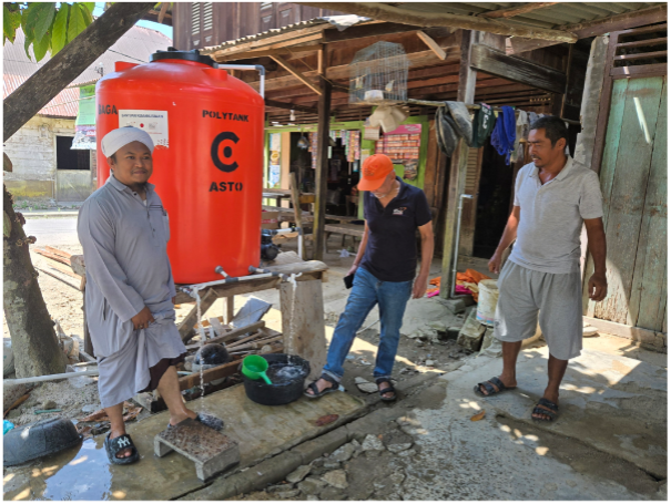 地下水・川の水を汲んで生活用水にしていましたが、洪水で既存の井戸が埋まり使用不能となったため、新設した貯水タンクが住民の貴重な水源となっています 。