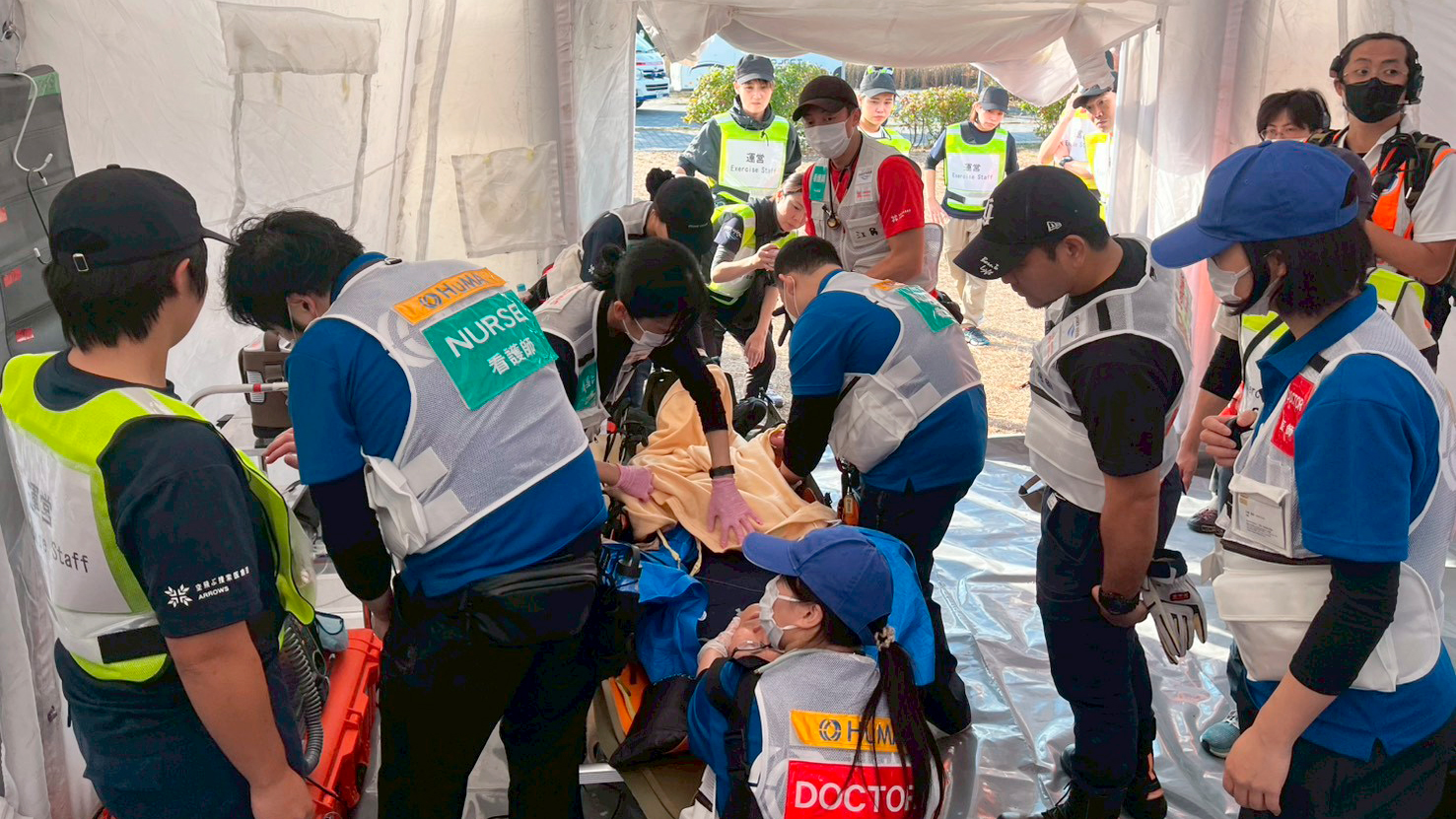 The multi-agency medical rescue training is held annually and this year marks its sixth. This is a rare initiative in Japan that connects on-site rescue with medical triage and treatment at a field hospital. Several key agencies participated including fire departments, businesses, and NGOs.